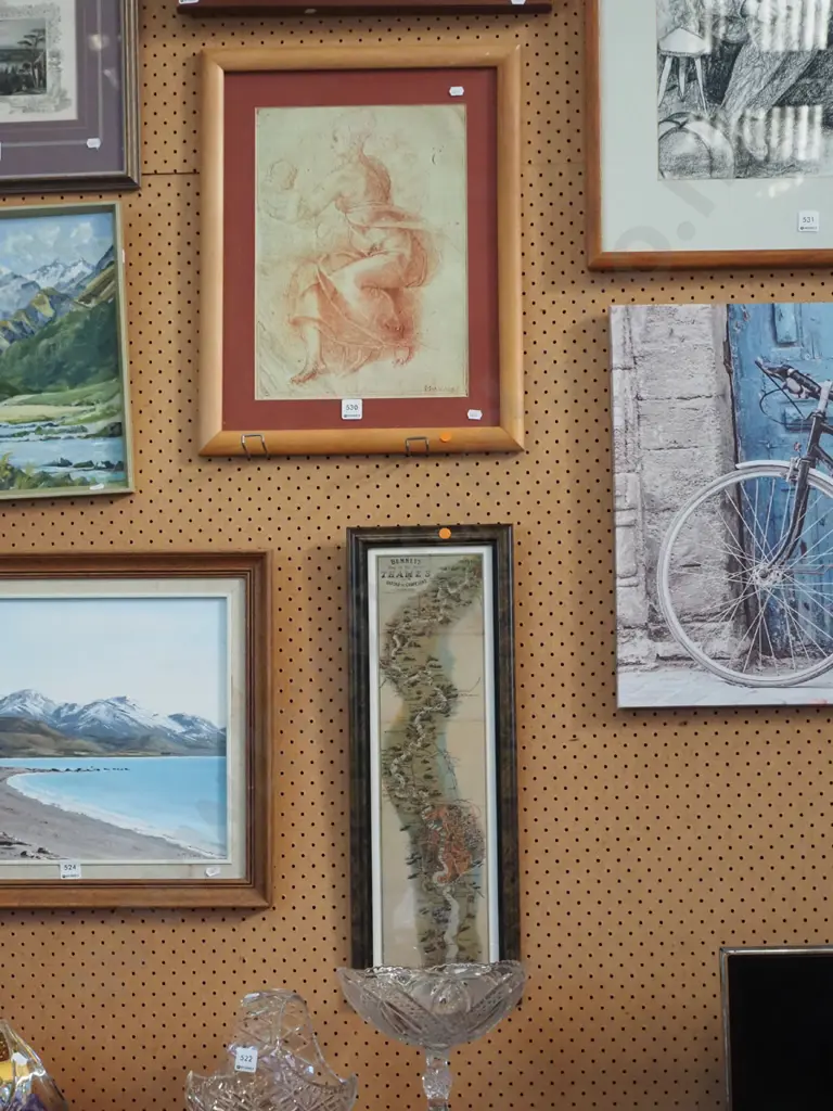 2x framed prints - mother and child, River Thames - orange dots