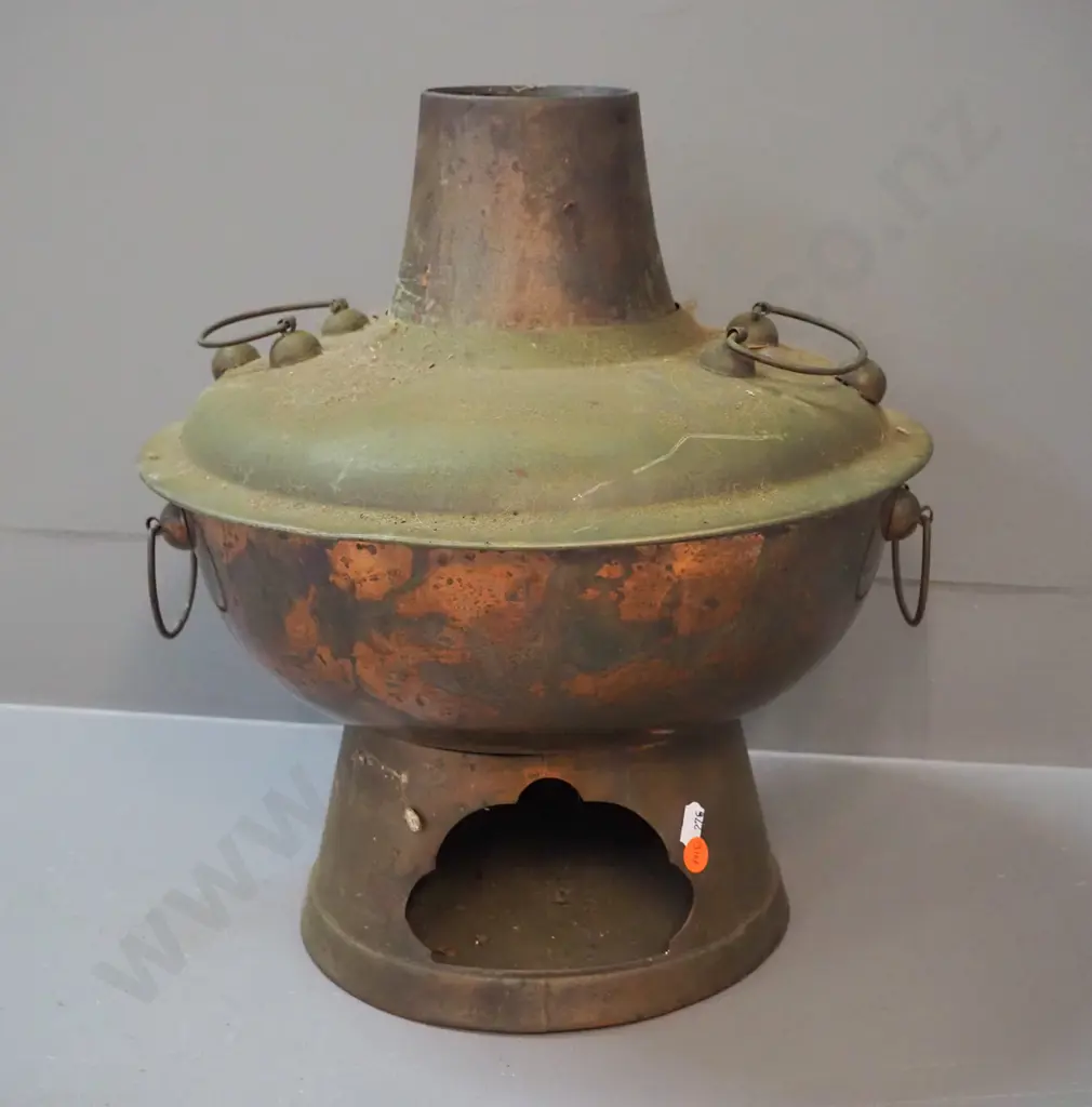 copper and brass plated metal thermette style water heater or food warmer H-360 D-320