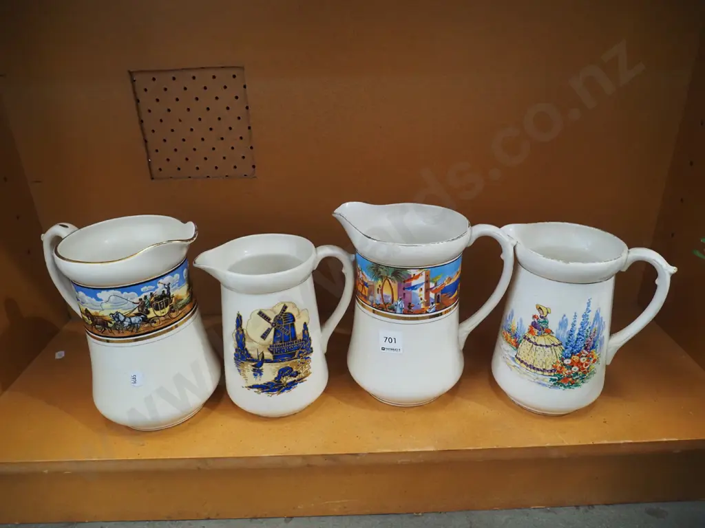 shelf; 4x large ceramic jugs
