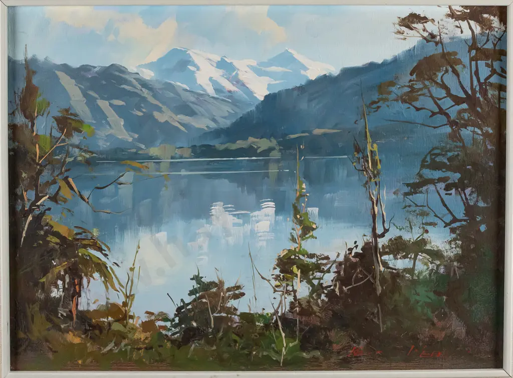 Kevyn Webb, framed oil "Lake Kaniere West Coast" H-290 W-400
