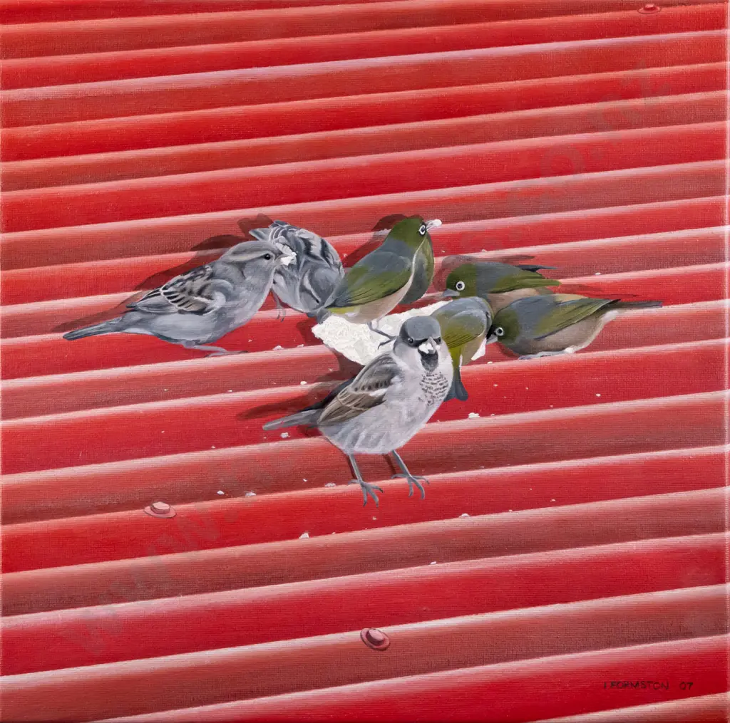 I Formston '07 - oil on box canvas - birds feeding H-380 W-380
