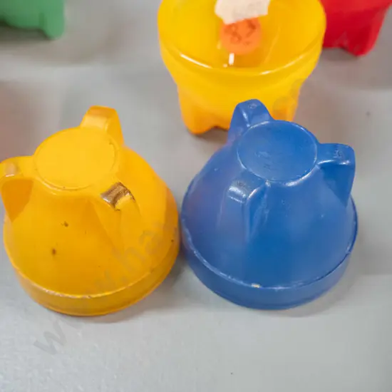 8 vintage moulded glass egg cups - 7 same shape in assorted colours and a slightly larger frosted yellow H-60