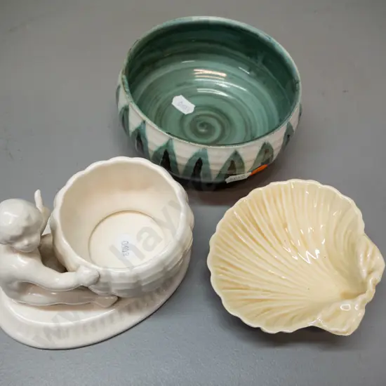 Temuka shell dish, Hanmer pottery bowl H-60 D-125 and a Sylvac figural trinket / bowl