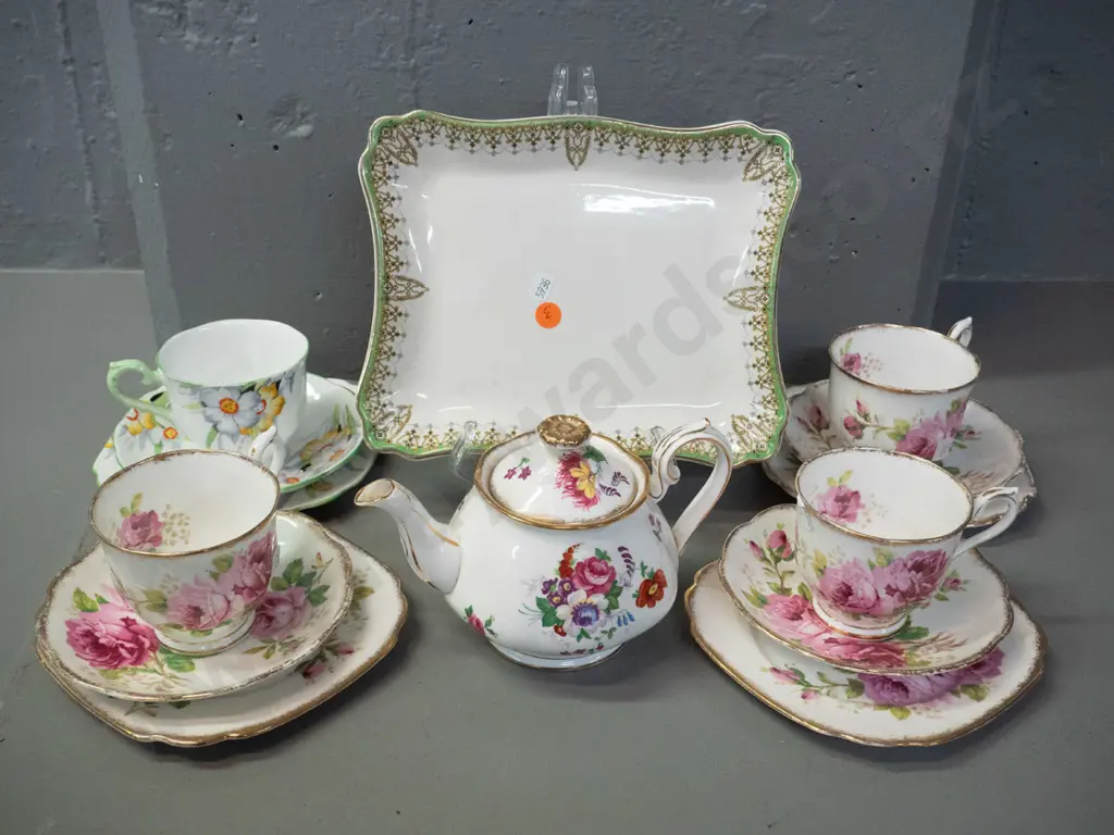 Royal Albert - 4 trios and a Barbara Ann small teapot and a Royal Doulton Tivoli dish L-230 W-190 - 3 American Beauty