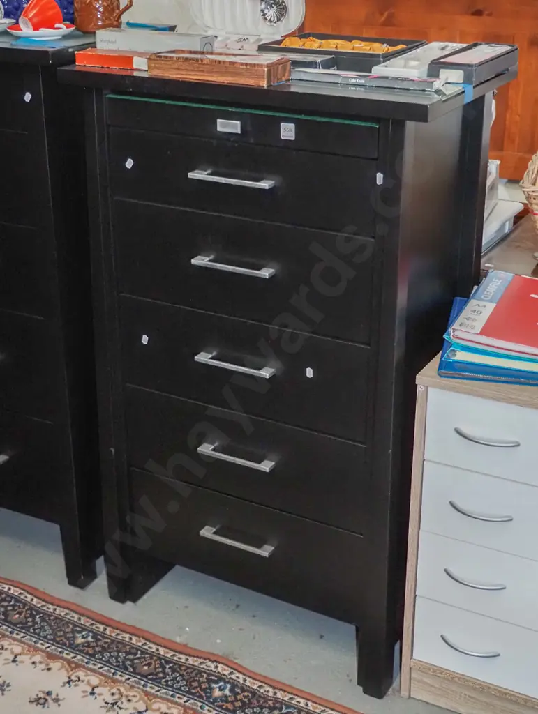black painted mdf 6 drawer glass top tall boy H-1140 W-700 D-430